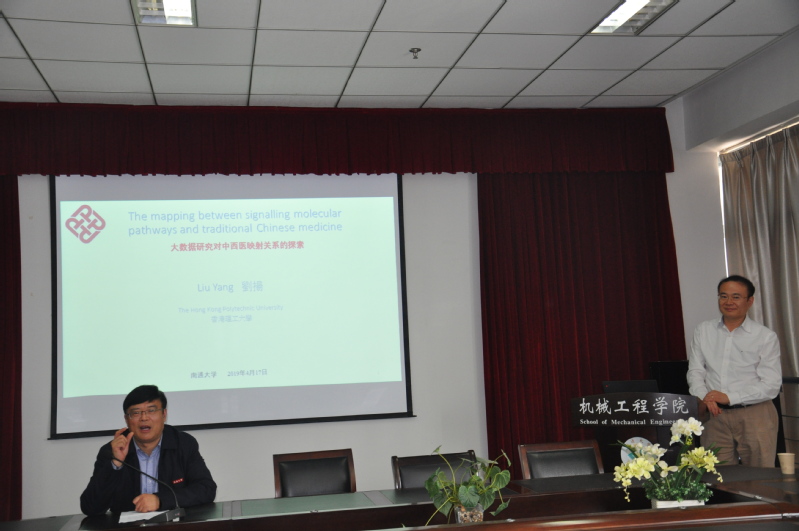 4月17日下午,香港理工大学刘扬教授应邀来我校伟德国际1946源于英国作题为 “从大数据分析显示出中医阴阳五行和信号分子通路之间的高度相似性”学术报告。校长施卫东主持报告会。