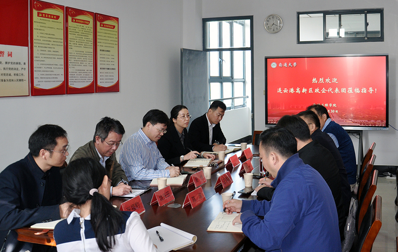 10月30日,连云港高新区管委会副主任徐勇、江苏悟空风行科技有限公司总经理何峥晖一行来校洽谈政产学研合作。