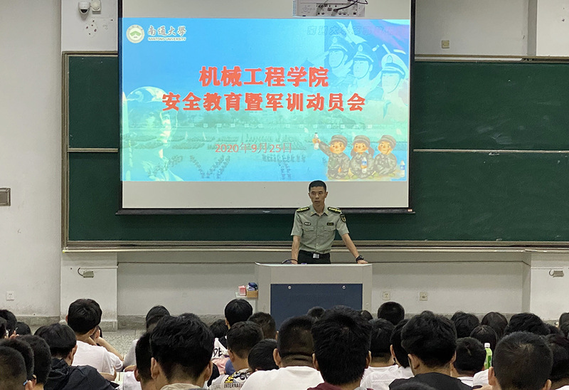 校人武部张青国老师为全体2020级新生进行军训动员,他向同学们展示了往年军训视频与照片,让同学们了解军训的整体流程;并提醒大家军训过程中需要准备的物品与注意事项。他希望同学们在军训中严格要求自己,磨炼自己的意志,锻炼强健的体魄,养成良好的生活习惯,展示机械学子奋发向上的精神面貌,争取在军训中取得佳绩。