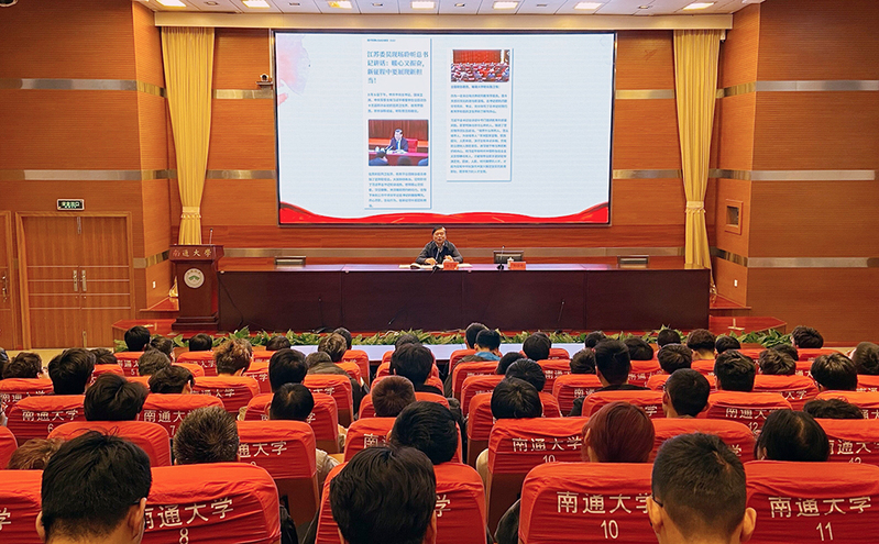 施卫东还介绍了张謇创办实业、发展教育、兴办社会公益事业的情况,深刻阐释了张謇精神蕴含的核心要义,并对同学们提出殷切期望:一是厚植爱国情怀,忠于祖国忠于人民。要积极践行爱国精神,涵养海纳百川、开放包容的爱国情怀;二是笃行实干兴邦,将个人努力汇入时代洪流。要与时代发展共振、与复兴大业同频,自觉投身新时代的改革潮流;三是勇担社会责任,做担当民族复兴大任的时代新人。要承载伟大时代使命,承担新时代大学生的人生责任,为中华民族伟大复兴贡献青春才智。