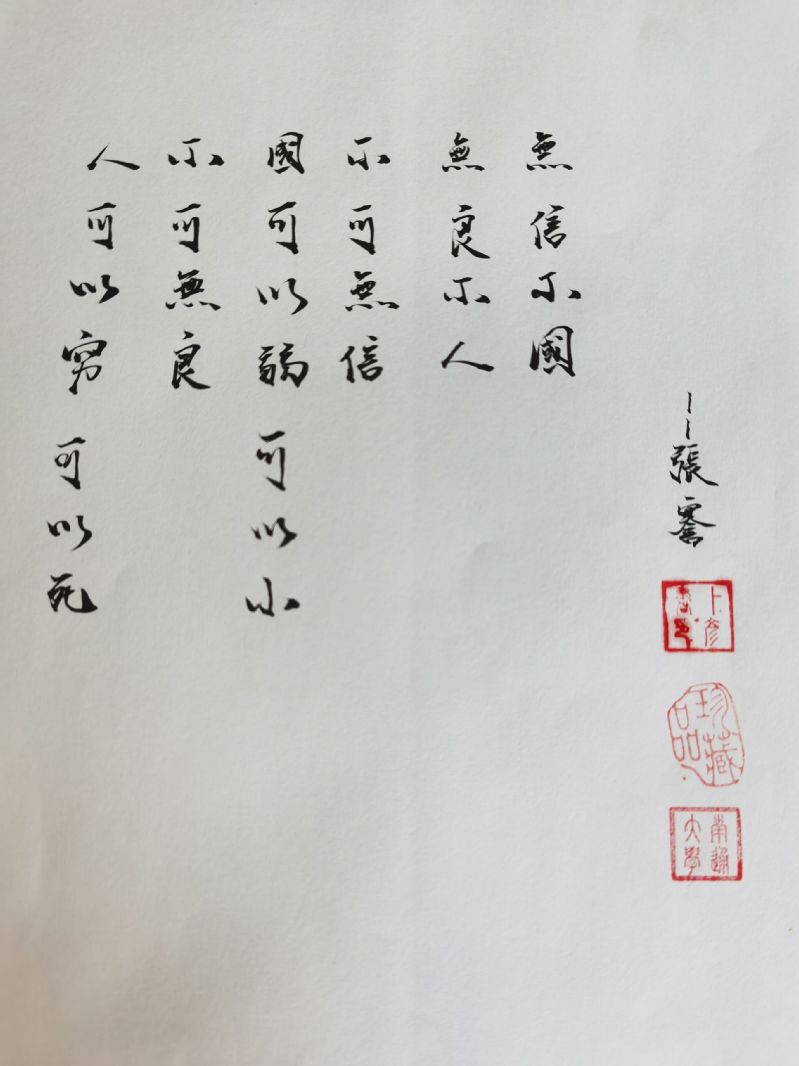 本次活动共收到二十余件书法作品。作品围绕“诚信”主题,以生动的笔触展示中华优秀传统文化的丰富内涵,以文字形式彰显社会主义核心价值观的现代意义。经过评审,研20程书铭获得一等奖,机电201王思远、研20印宇获得二等奖,研21伍祥龙、研20陈妍、研21张明会获得三等奖。