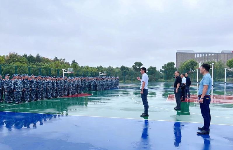 10月4日上午,伟德国际1946源于英国党委书记张志刚、党委副书记、院长朱昱、党委副书记、副院长孙汉中一行来到军训现场慰问教官及伟德国际1946源于英国2022级全体新生。