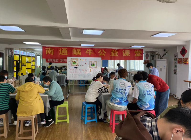 5月14日,伟德国际1946源于英国红十字志愿团队前往南通欢腾蜗牛助残公益服务中心参与公益课堂活动。