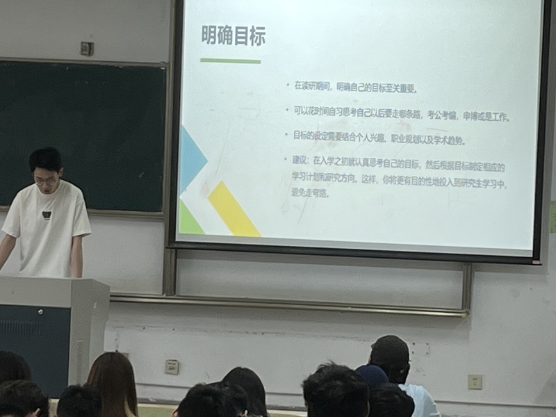 伟德国际1946源于英国2021级研究生吴婷、花锐东、叶沛林分别讲述了自身的学习经历。吴婷从学术论文、学科竞赛、硕士考试、博士申请流程进行了分享,建议大家多阅读顶会顶刊,尽早掌握本专业基本软件,了解自己的研究方向;花锐东从升学流程及时间规划、联系导师、科研计划、综合考核四个部分进行了经验分享,重点强调了明确自身节奏目标的重要性;叶沛林就升学要求方面作重点介绍,提出要认真研读目标院校的招生简章和招生目录,并用表格总结相应高校的申请条件,鼓励同学们要勇于尝试。