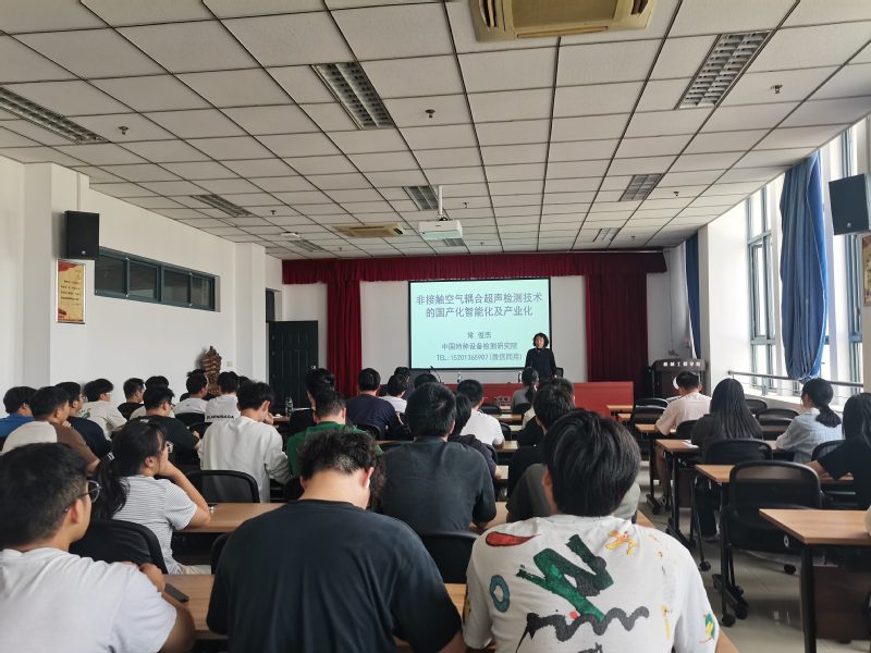 常俊杰以《非接触空气耦合超声检测技术的国产化智能化及产业化》为题,阐述了非接触空气耦合超声波检测技术的基础理论以及实现空气耦合超声检测所需要解决的关键技术,深入浅出解析了空气耦合超声波检测的原理和方法,主要包括体波和导波、同侧检测法、异侧检测法等。报告会后,常教授与现场师生进行了深入交流,解答了检测技术方法方面的问题,并鼓励学生们关注制造业前沿技术,积极投身科学研究。