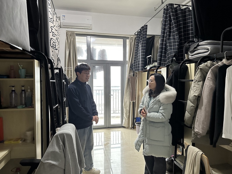 检查过程中,殷春华与留校学生进行了面对面交流,详细了解他们的留校安排与实际需求,并着重强调了多项安全注意事项:一是增强个人安全意识,保持通讯畅通,夜间尽量避免单独外出,注意出行安全;二是严格遵守学校宿舍管理规定,严禁使用违规电器,做到人走电断,切实防范用电火灾风险;三是妥善保管个人财物,离开宿舍及时锁门关窗,共同维护宿舍区域防盗安全;四是提醒同学们注意保持宿舍卫生整洁,勤通风,预防疾病,度过一个平安、健康的假期。