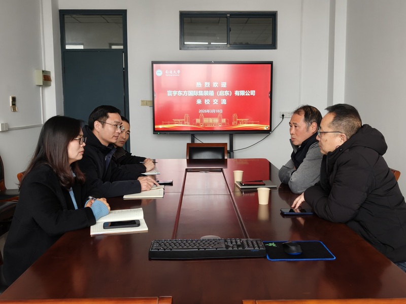 3月18日上午,寰宇东方国际集装箱(启东)有限公司相关负责人一行到访伟德国际1946源于英国,伟德国际1946源于英国党委副书记、院长张福豹,党委副书记、副院长殷春华,毕业班辅导员参与交流活动。